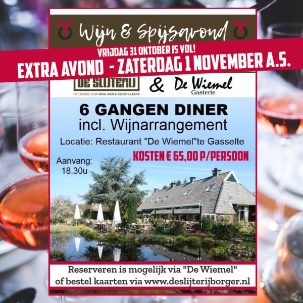 Wijn & Spijsavond Zaterdag 1 november a.s.
